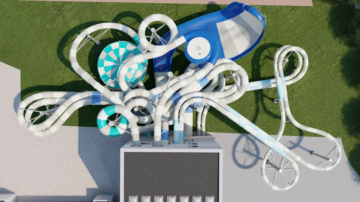 Après une première rénovation en 2010, le parc aquatique Aqualibi -voisin du Parc Walibi Belgium- propose en 2023 une nouvelle tour de toboggans.