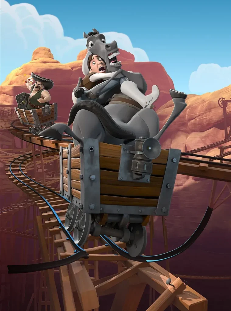 C’est le très réputé Red Star 3D qui produit le nouveau film du parc. Durant près de 5 min, les visiteurs vivent une histoire rocambolesque ! Les visiteurs sont invités à suivre un shérif poissard et son cheval dans une course effrénée sur les traces d’un bandit facétieux ! Attraction accessible dès 1,20 m