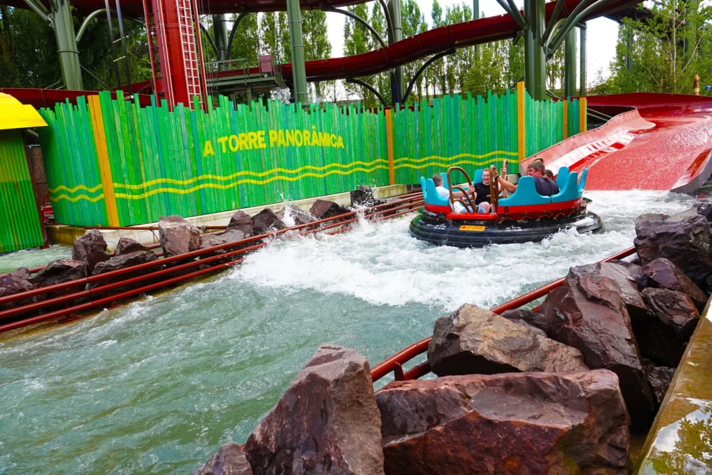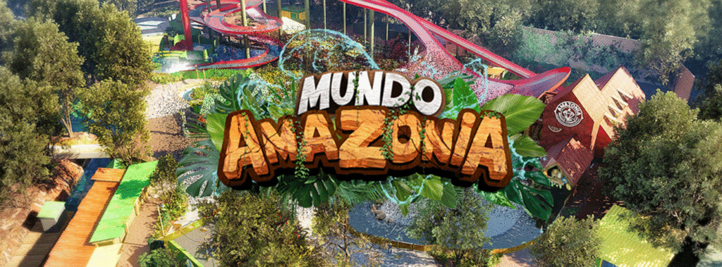 La nouvelle aire Mundo Amazonia remplace l’ancienne section Far‑West, dévoilant un décor luxuriant inspiré de l’Amazonie brésilienne. La végétation dense, les couleurs chaleureuses et les structures en bois créent une atmosphère dépaysante.