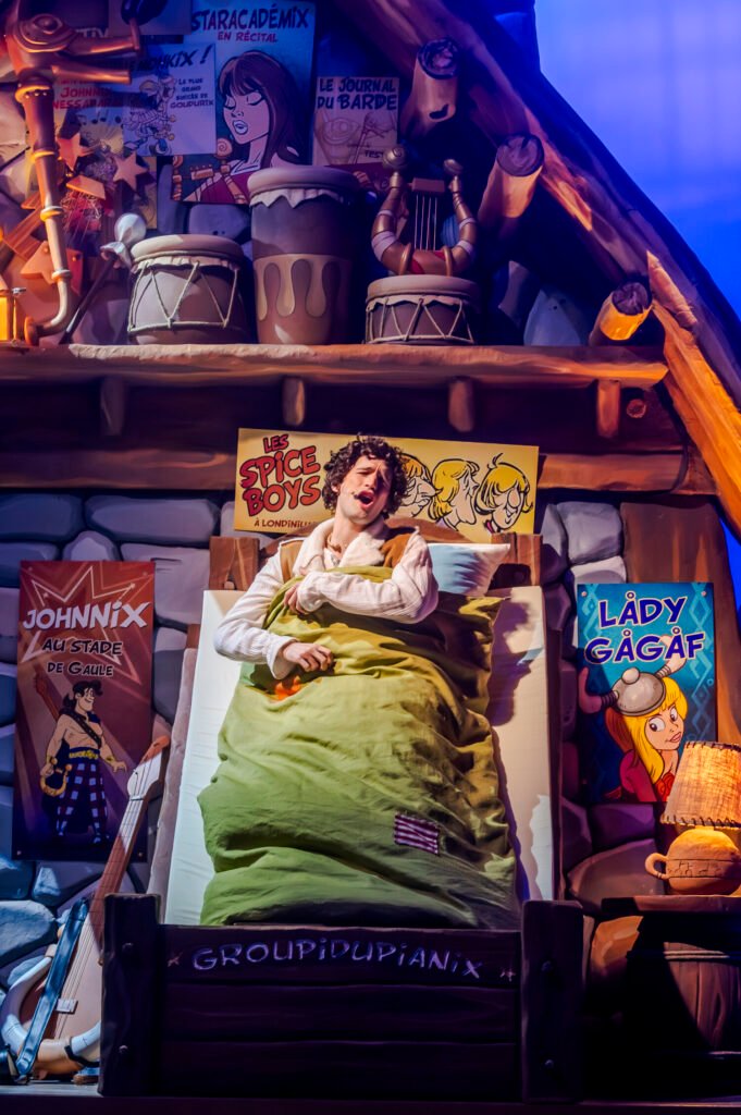 Le spectacle réunit 11 chanteurs-comédiens, évoluant au sein de 26 décors et portant pas moins de 80 costumes conçus spécialement pour l’occasion. Les chansons originales, écrites et composées par Ludovic-Alexandre Vidal & Julien Salvia, mêlent humour gaulois et clins d’œil pop, entre séquences dignes du « Barde et la Bête » ou passages évoquant des idoles comme Johnny Hallyday (Johnnix). Le rendu est vif, moderne et rythmé, parfait pour plaire à toute la famille.