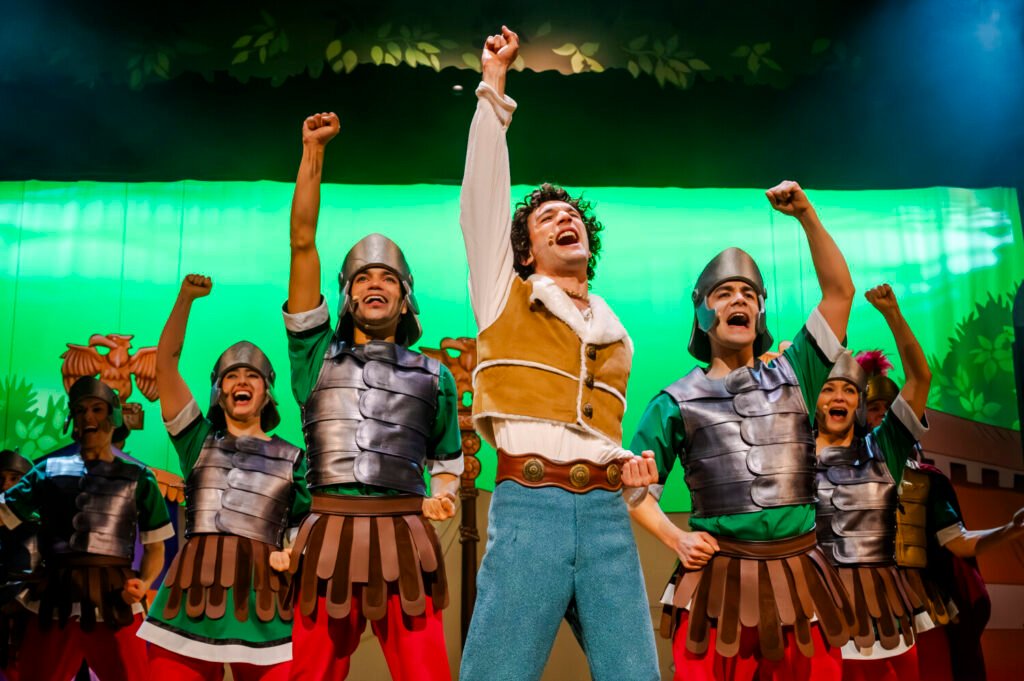L’intrigue suit l’alliance inattendue de deux personnages qui poursuivent leurs rêves : l’un en chant et l’autre en magie druidique, tout en affrontant les Romains qui guettent le secret de la potion magique. Pas de présence de personnages habituels de la BD, mais c’est là tout le succès de cette épopée musicale. L’humour, tonique, ainsi que les clins d’œil à la culture pop rendent le spectacle très accessible, même pour les spectateurs novices, tout en garantissant de beaux moments de complicité avec les irréductibles Gaulois.