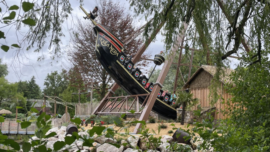 Dennlys parc investit 1 million d’euros cette saison pour créer une véritable zone thématique sur les pirates, avec l’ouverture d’un bateau à bascule pouvant accueillir 40 passagers. Il s’agit du modèle Corsair du groupe Fabri, le même modèle que l’attraction se trouve déjà à Fraispertuis City.