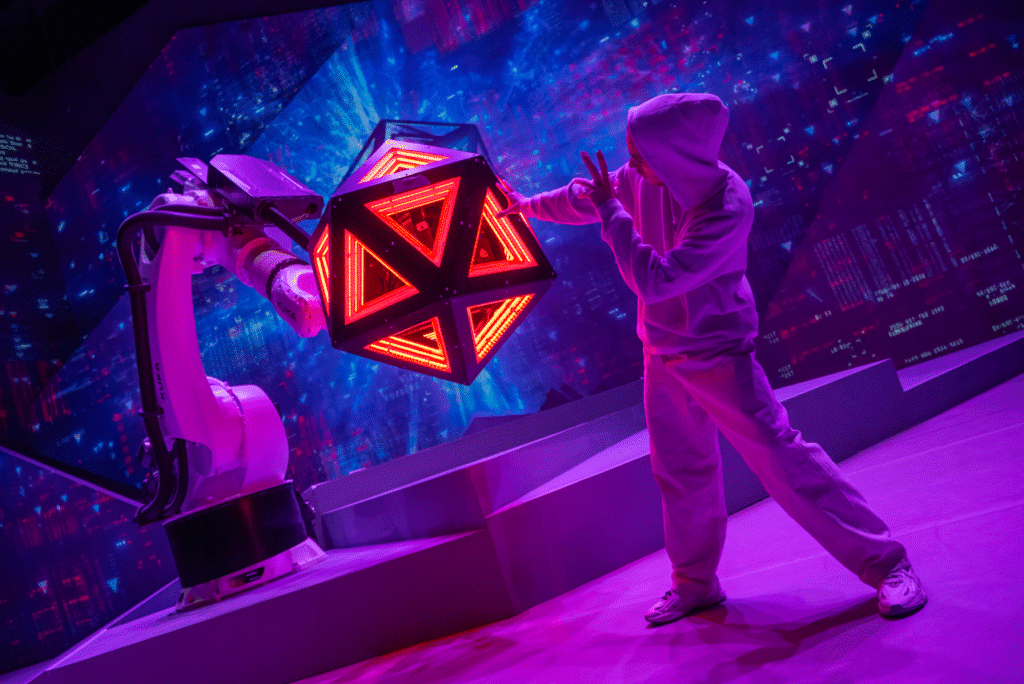 La mise en scène s’appuie sur un écrin technologique animé par des mapping vidéo et des effets de lumière. La salle accueillait auparavant « Les Mystères du Kube » qui intégrait déjà quelques technologies, ici décuplées dans ce nouveau show. Toute la salle a été repensée pour un effet waouh garanti. Les technologies plongent Lucas dans des univers fantastiques et technologiques très variés, aux inspirations multiples, avec des jeux de profondeur, de perspectives, de hauteur et de sous-terrains.