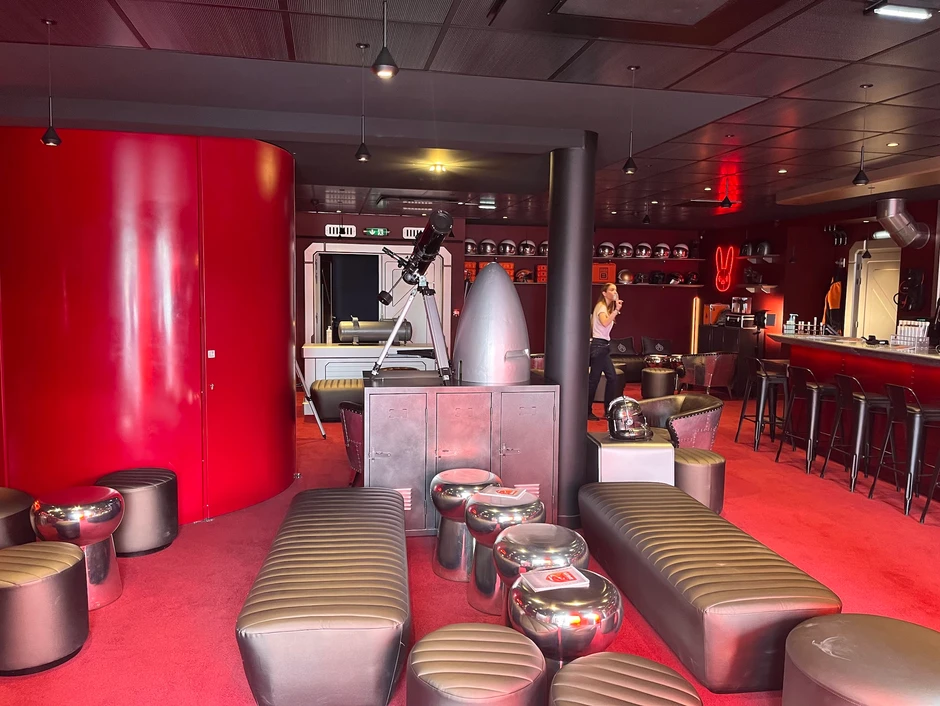 Le bar des pilotes est truffé d’accessoires et de décors surprenants, vous plongeant dans l’univers de pilotes de bolides spatiaux. Des cocktails fous et quelques boissons surprenantes sont disponibles dans le bar ou en terrasse, près d’un vaisseau taille réelle !