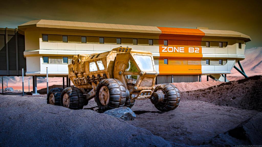 Le concept architectural de l’hôtel est tout droit inspiré des projets d’implantation de colonies humaines sur Mars. Il met en scène une base spatiale installée sur une exoplanète dont le paysage minéral est composé d’enrochements, de cratères et de failles.