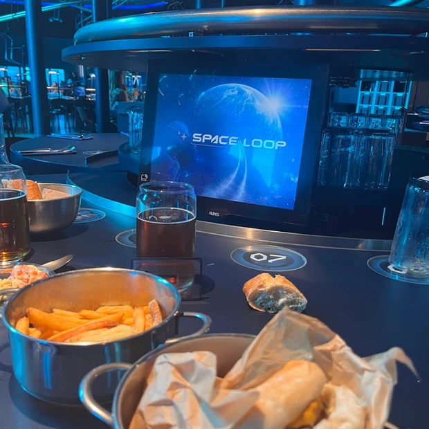 Chaque client est doté d’une carte RFID qui sera son pass pour accéder à l’écran de commande. Un charmant hôte vous accueille, vous place à table et vous apportera ainsi toutes les informations nécessaires à votre expérience dans le SpaceLoop.