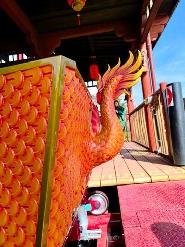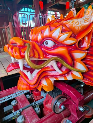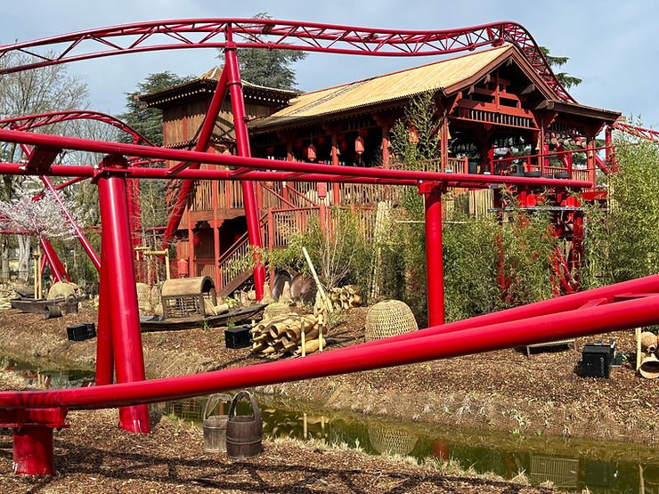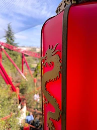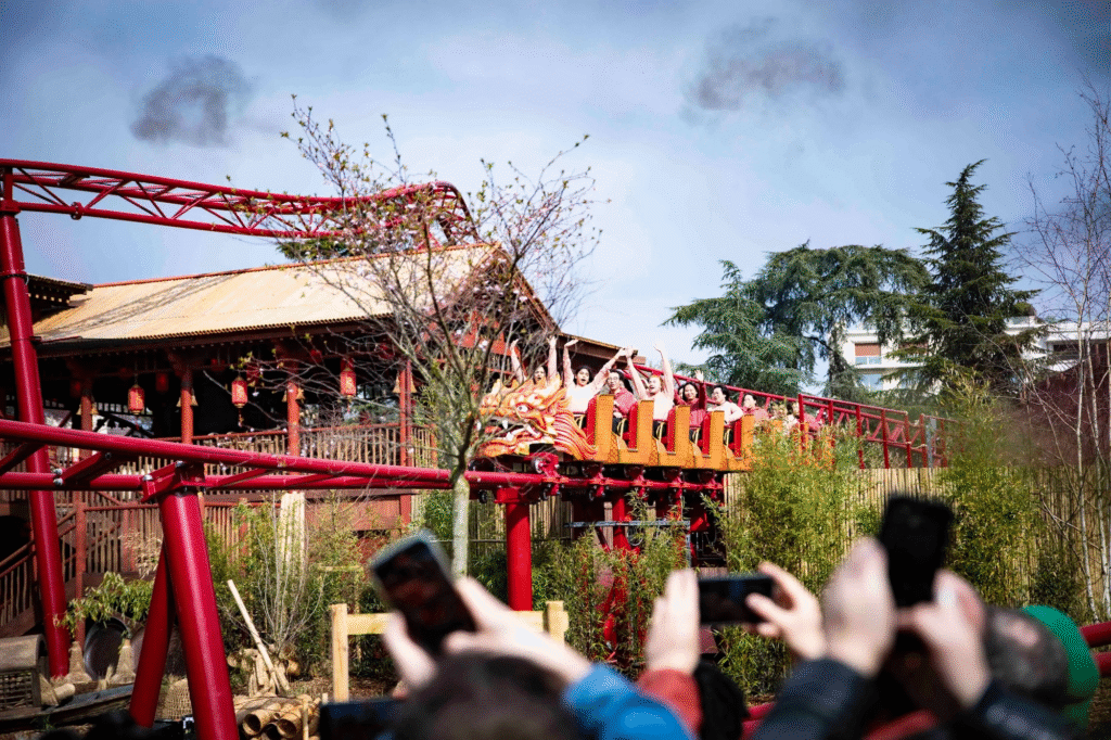 Les visiteurs seront transportés dans un village de pêcheurs chinois soigneusement reconstitué, où les décors, la végétation et la rivière restaurée offrent une immersion complète avant même l’embarquement. Une fois installés à bord du dragon rouge ou du dragon jaune, le train est propulsé à 50 km/h, catapulté hors de la gare avant d’entamer une première boucle ponctuée de virages serrés et de passages au ras du sol.
