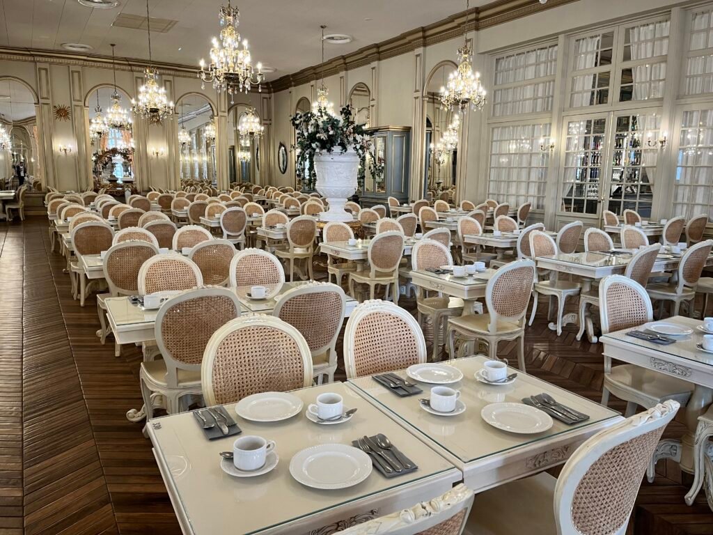 Le Grand Siècle propose également une expérience culinaire à la hauteur de son décor, avec son vaste restaurant La Table des Ambassadeurs. Cette salle de restauration peut accueillir jusqu’à 500 convives, dans un espace somptueux décoré de grands lustres, de colonnes cannelées et de miroirs, évoquant les somptueux décors du XVIIème. Les repas sont proposés sous forme de buffets thématiques, mêlant inspirations historiques et goûts contemporains.