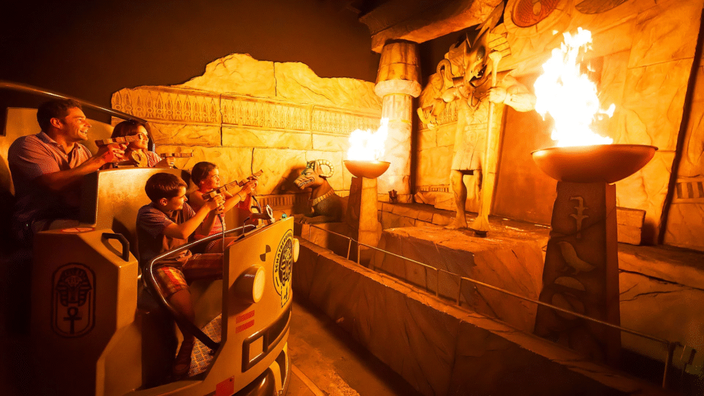 Armé d’un pistolet laser, pénétrez dans ce tombeau égyptien inquiétant… Des momies et d’autres créatures terrifiantes se cachent dans les endroits les plus inattendus et vous feront sursauter à coup sûr ! Arriverez vous jusqu’à la salle du trésor ?
