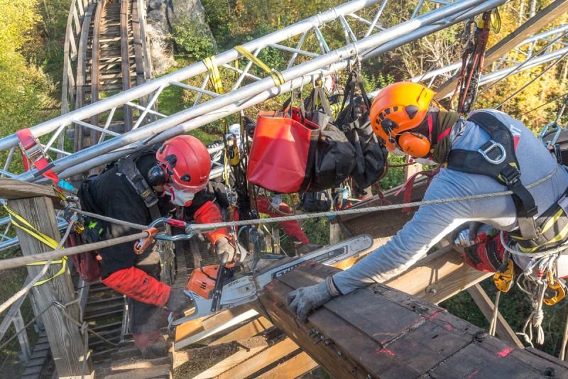 Le chantier de transformation débute en 2019, alors que le parc identifie la nécessité de rénover l’un de ses coasters phares, inauguré en 1997. Dès cette première année, la première descente ainsi que le virage suivant sont retravaillés. L’objectif est clair : adoucir les secousses, réputées pour être particulièrement éprouvantes, sans pour autant atténuer les sensations fortes. L’idée est d’offrir un meilleur confort, notamment sur les zones les plus intenses du parcours, tout en conservant le caractère brut du coaster en bois.