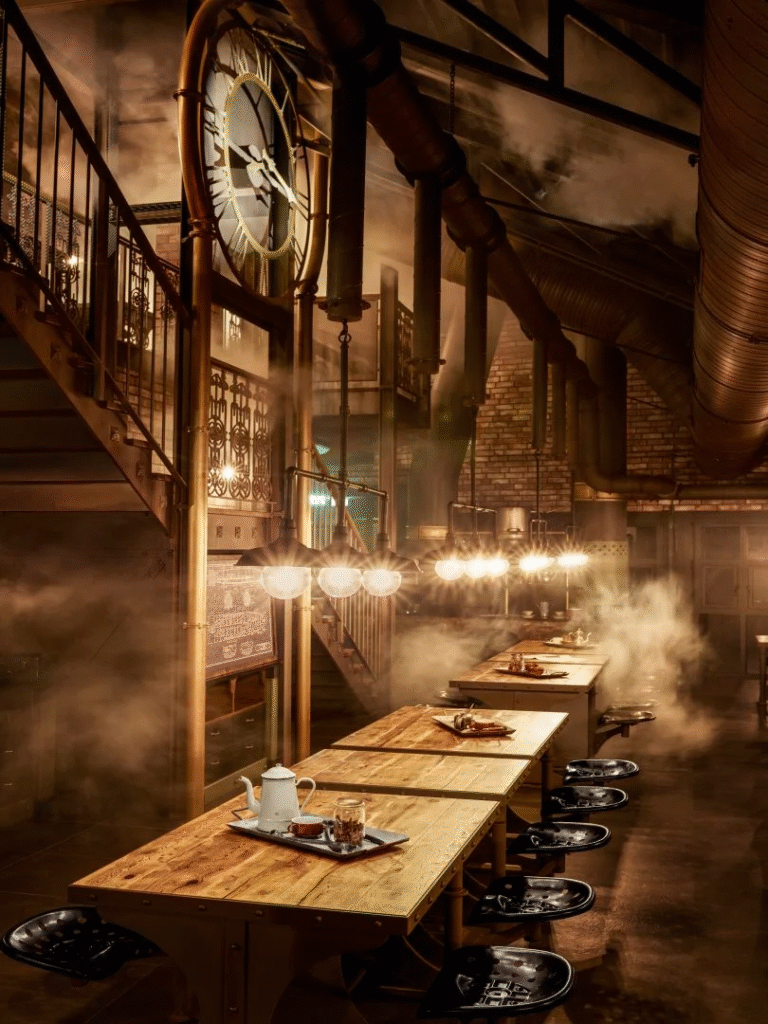 Rookburgh se distingue par sa capacité à faire vivre une histoire à travers chaque aspect de la visite : architecture, sensations, sons, odeurs et goûts sont mobilisés pour une immersion totale. Les boutiques et restaurants ne sont pas de simples commodités : ils sont des personnages à part entière dans ce récit industriel où chaque bouchée, chaque chocolat, chaque plat raconte une partie de l’histoire où FLY a le premier rôle !