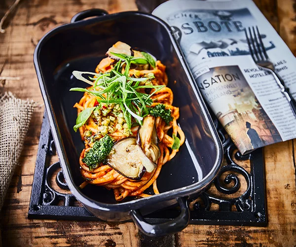 Présentée sous forme de journal, la carte met en avant une cuisine faite maison, variée et savoureuse : burgers à la viande ou végétariens (les Rook-Burgers), frites fraîches aux toppings originaux (parmesan, pesto, truffe), mais aussi des poké bowls, tartares ou pâtes cuisinées avec soin. En dessert, place aux cheesecakes glacés, puddings crémeux ou douceurs chocolatées rappelant l’univers d’Emilie’s.
