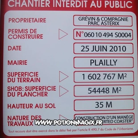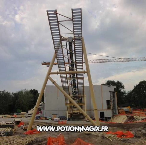 Une fois les rails arrivés sur place, le montage a donc pu commencer. Via le permis de construire, datant du 25 juin 2010, on y voit les premières informations : 35 mètres de hauteur ou encore le type d’attraction.