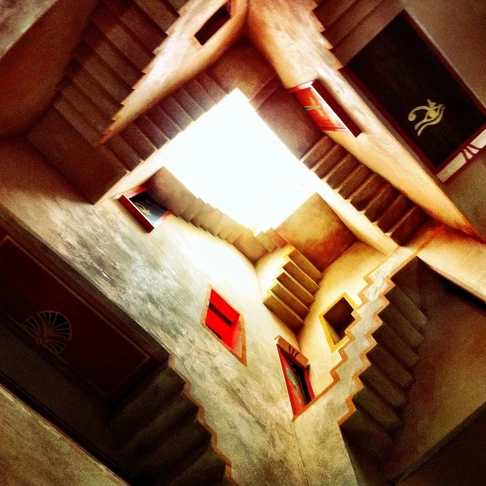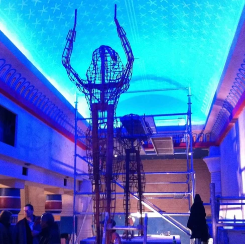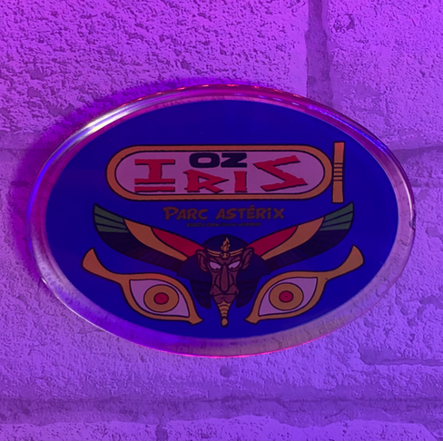 La totalité de la file d’attente est composée de jeux de mots, d’humours, de parchemins et sculptures en tout genre. D’abord en extérieur, vous finissez par entrer dans un temple, dans lequel Iris vous attend. La storyline, autrement dit l’histoire de l’attraction, utilise ce personnage, issu des douze travaux d’Astérix. Il a la capacité d’hypnotiser les personnes qu’il rencontre sur son passage. Il hypnotise alors les intrépides visiteurs qui viendraient croiser son regard, en les faisant passer pour des animaux. Il met alors les individus dans un état en dehors du temps, dans lequel ils n’ont plus le contrôle de leur vie, et deviennent alors des oiseaux. Telle la phrase au départ de l’attraction : « Par Osiris et par Apis, vous êtes maintenant des oiseaux, oui des oiseaux ». Vous l’aurez compris, le nom de l’attraction est alors un jeu de mots, un mix entre oz (oser), et Iris. Il s’agissait d’ailleurs du slogan lors de l’ouverture : « allez-vous oser Oz’iris« .