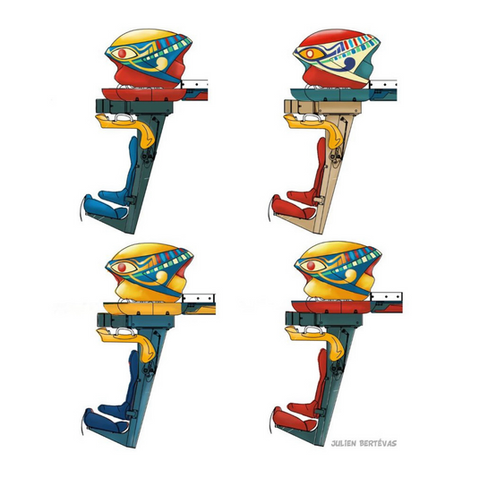 Avant même la construction, un travail de création et de conception a été évidemment nécessaire. Cela passe par les couleurs dominantes recherchées, du design des sculptures, des trains et plus encore. En voici plusieurs représentations, réalisées par Julien Bartevas :
