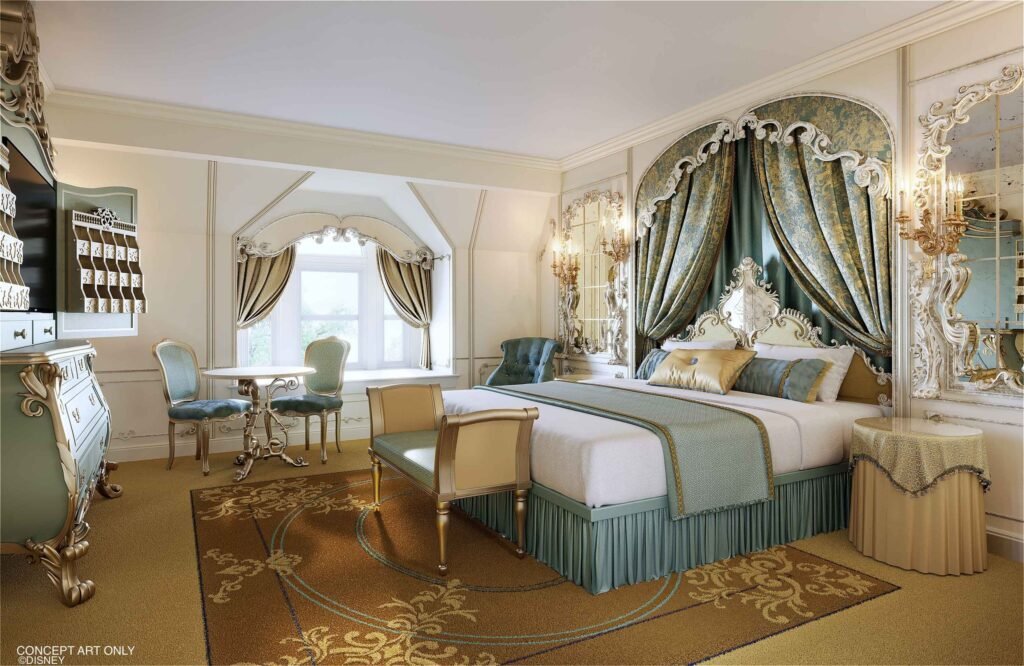 Dès le hall, les codes du luxe sont bien là : marbres, dorures, grands lustres scintillants et fresques plongent petits et grands dans un décor digne d’un château. Le service monte aussi en gamme : check-in digitalisé, conciergerie multilingue et ambiance musicale orchestrée renforcent l’immersion. Les résidents du très exclusif Castle Club bénéficient d’un étage privatisé avec ascenseur dédié, petit déjeuner royal et vue imprenable sur le parc. L’hôtel incarne une nouvelle vision du haut de gamme Disney : plus élégant, plus narratif, et résolument tourné vers l’expérience.