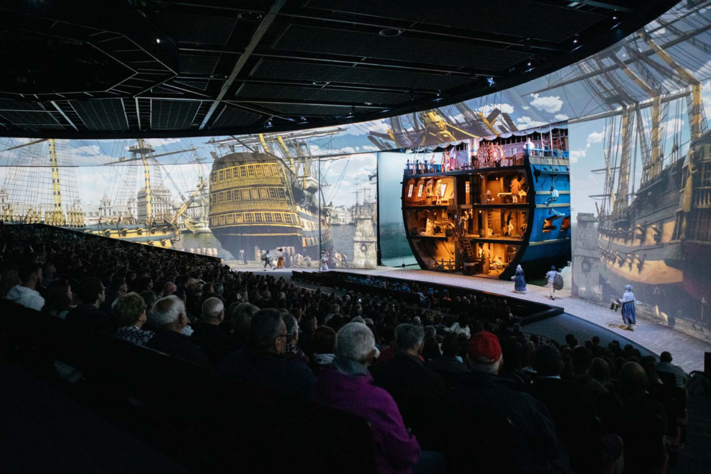 Ce spectacle très atypique et impressionnant mêle scènes véritables et projections de haut niveau. Pour être embarqués dans l’histoire, nous vous conseillons de vous installer dans la moitié basse de la tribune, afin d’être plongés dans les écrans tout en profitant des détails des scènes qui se jouent devant vous !