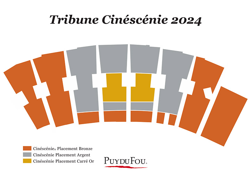 Pour profiter pleinement de la Cinescénie, chaque spectateur est installé en tribune, face à la plus grande scène du monde. La vue est panoramique, pensée pour ne rien manquer du spectacle.