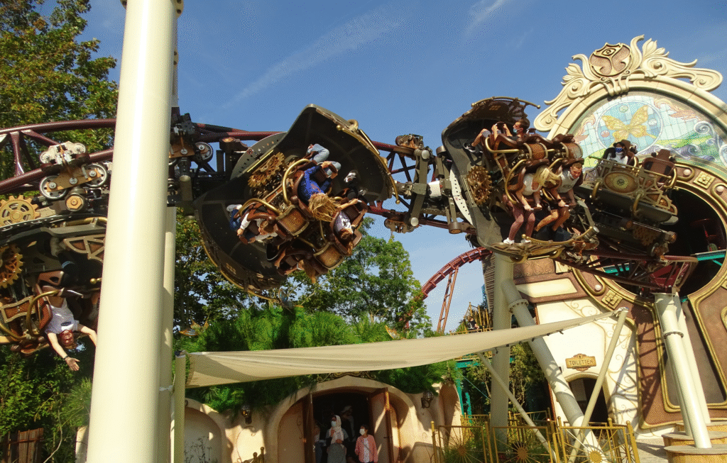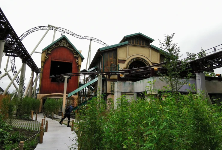 Tomorrowland, c’est le plus grand festival électro du monde et il a maintenant sa propre attraction ! Vous entrez d’abord dans une zone aux couleurs très marquées & à l’ambiance verdoyante. Les bâtiments ont des allures féériques & sont parfaitement intégrés dans le décor, de la gare aux garages, tout est dans le thème.