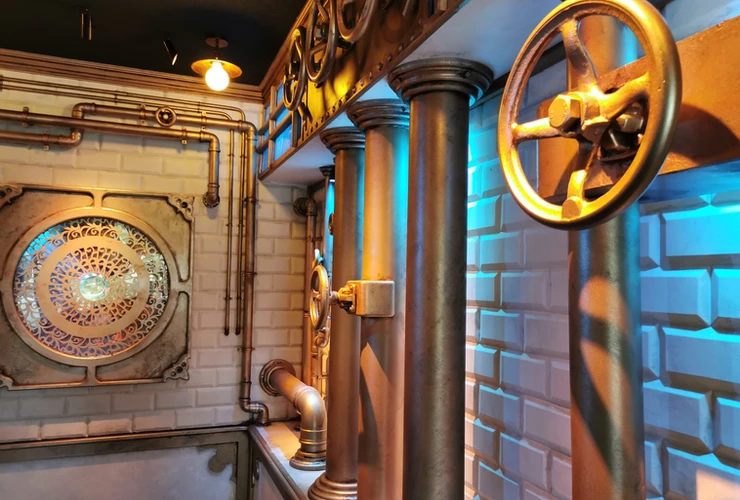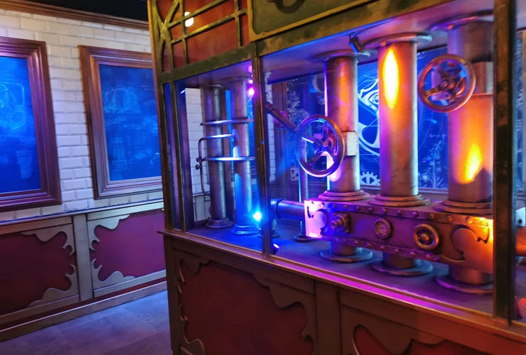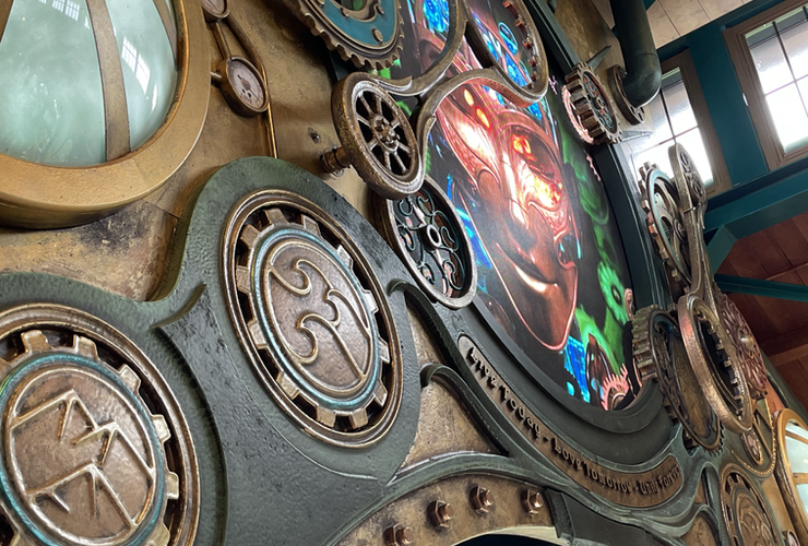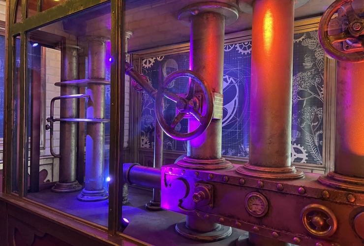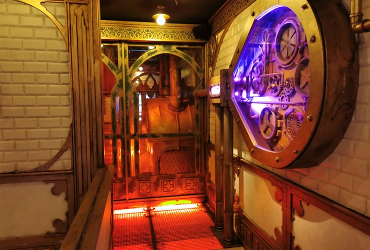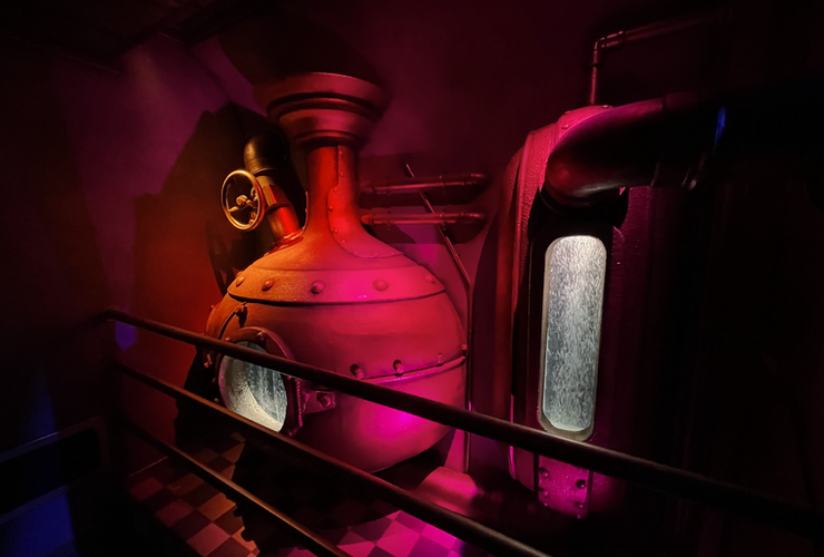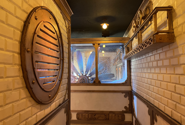 Arrivé en gare, c’est le grand Waou ! L’espace est grandiose, l’ambiance très proche d’un univers SteamPunk. Face aux visiteurs embarqués dans le train en gare, une IA impressionnante vous souhaite un bon voyage, au milieu d’un entremêle de mécanismes. L’endroit est fascinant & vous met dans d’excellentes dispositions pour votre voyage.