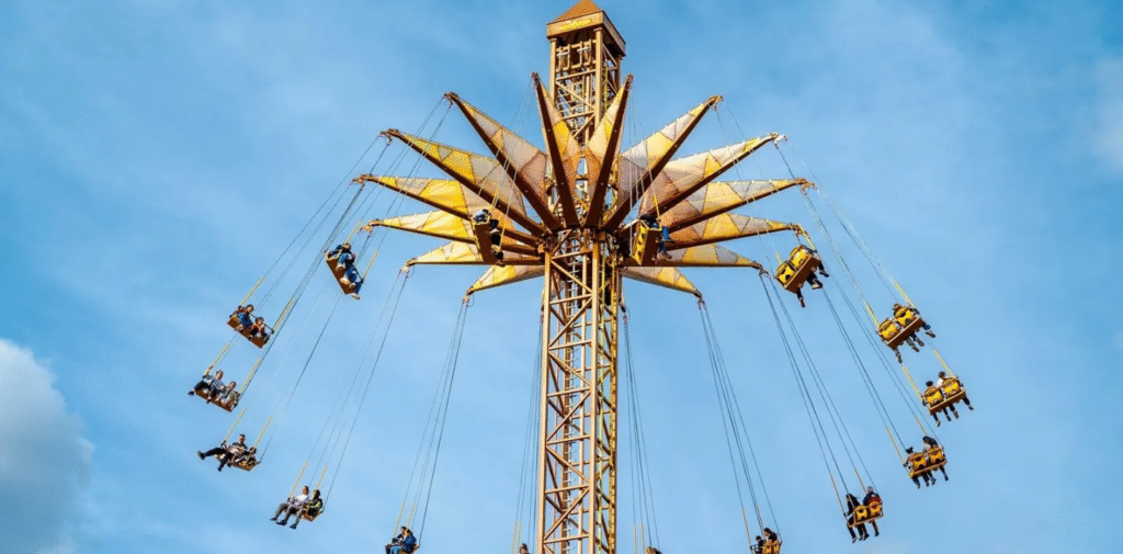 La Tour de Numérobis, inaugurée en mars 2024 au Parc Astérix, est une attraction à sensations fortes située dans la zone Égypte. Fabriquée par Zamperla, elle culmine à 40 mètres et propose une ascension verticale suivie d’une rotation panoramique et d’une descente immersive. Inspirée de l’architecte loufoque de la BD, elle mêle humour et adrénaline, dans un décor fidèle à l’univers d’Astérix. L’attraction est accessible dès 1,20 mètre