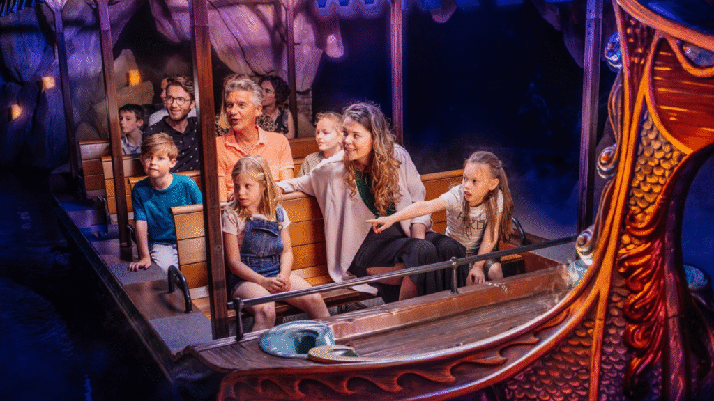 Merlin’s Quest est une attraction de type Boat ride, comme son nom l’indique, elle se caractérise comme étant une attraction sur l’eau, dans laquelle le visiteur s’installe dans de jolies embarcations.