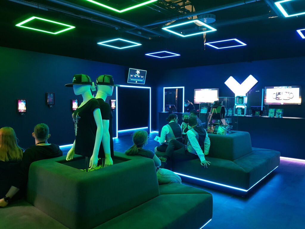 Situé juste à côté de l’hôtel Krønasår et de l’univers aquatique Rulantica, nous entrons dans une grande salle plongée dans le noir. La décoration futuriste nous met immédiatement dans l’ambiance : des carrés dotés de led au plafond, une musique d’ambiance et des tablettes au mur nous accueillent.